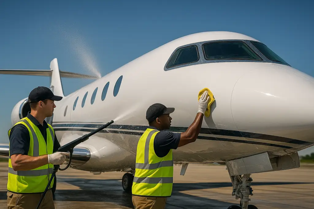 Private jets typically benefit from aircraft detailing every 25–30 flight hours, while commercial aircraft should have cabins sanitised daily and exteriors deep-cleaned weekly.